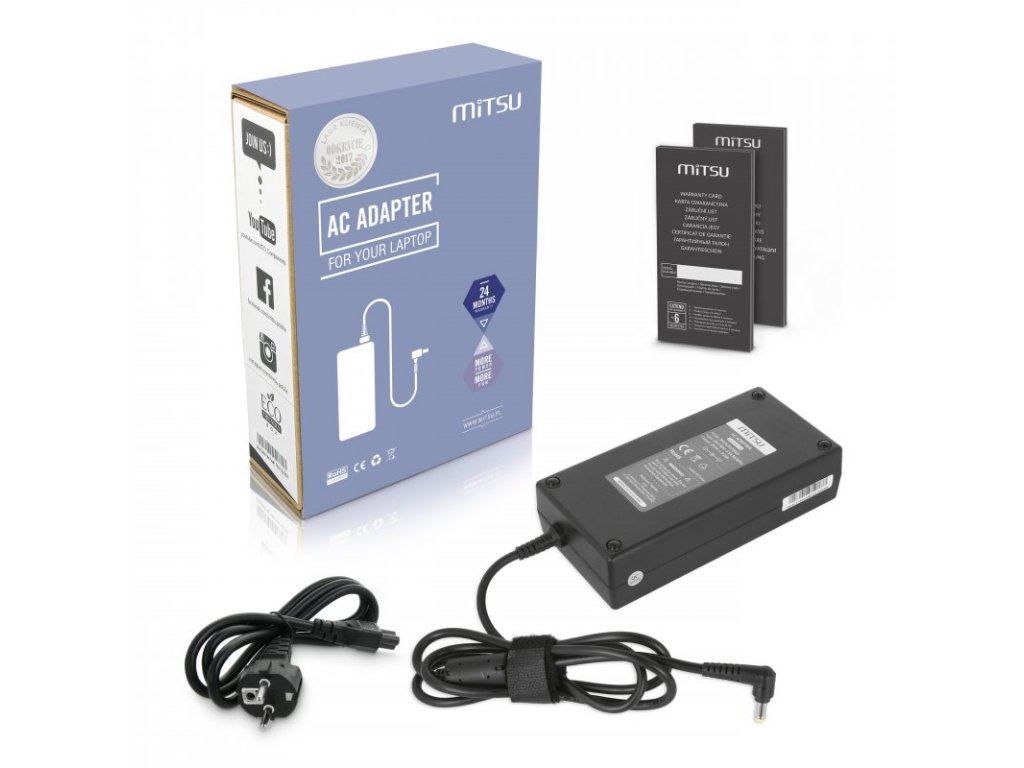 Kvalitní náhradní nabíječka značky Mitsu s výkonem 180W. Plně kompatibilní alternativa k originálnímu adaptéru. Na produkt poskytujeme záruku 24 měsíců.