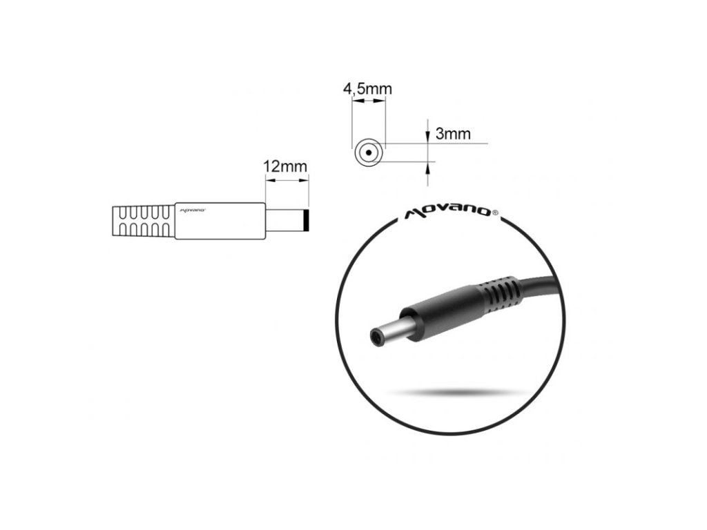 Nový náhradní adaptér značky Movano s certifikátem kvality CE, RoHS určený pro notebooky Dell.
